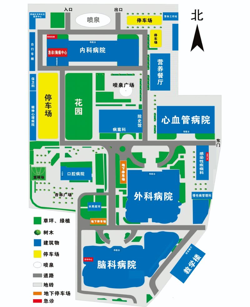 醫(yī)院重視患者的就醫(yī)體驗(yàn)和員工的工作環(huán)境,強(qiáng)化“園林式”單位建設(shè),著力打造區(qū)域最美就診環(huán)境。整個院區(qū)整潔利落,以“杏林苑”為中心,向外輻射,建有口腔病院、精神心理病院、院史館、心血管病院、腦科病院、內(nèi)科病院、外科病院、科教樓等大樓,其余地方全部覆蓋綠植,綠化面積達(dá)7萬平方米,可為患者提供超過1200個停車位。院區(qū)景觀由中心娛樂休閑廣場、杏林苑、南廣場和東苑組成,每處景觀都經(jīng)過精心設(shè)計(jì),融小橋流水、噴泉、雕塑、巨石、音樂、健身設(shè)施于一體,成為患者休閑娛樂、康復(fù)的家園。院內(nèi)巨石和雕塑布置寓意深遠(yuǎn),巨石刻字有對患者的祝福——“平安永駐”,有對醫(yī)務(wù)人員的告誡和責(zé)任——“大醫(yī)精誠”,雕塑中有中外古今之醫(yī)界名流,也有對促進(jìn)醫(yī)院發(fā)展作出突出貢獻(xiàn)的當(dāng)代楷模。每棟住院樓自成體系,從門診到住院,從檢查到治療均在樓內(nèi)一站式完成。病區(qū)設(shè)計(jì)人性化,醫(yī)患分離,工作人員有獨(dú)立的生活和休息區(qū)域,住院病區(qū)整潔敞亮,優(yōu)雅舒適,配備有衛(wèi)生間,每張病床配備有獨(dú)立床頭智能平板電視,可提供影視觀看、健康宣教、費(fèi)用查詢、移動支付、反饋意見等服務(wù)。
