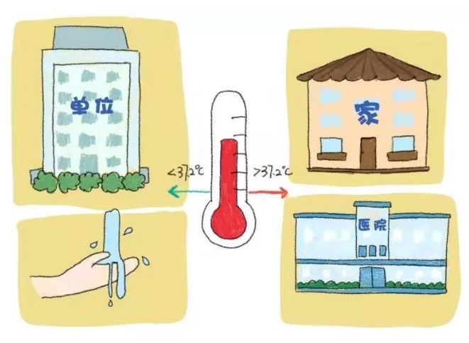 進入辦公樓前自覺接受體溫檢測,體溫正常可入樓工作,并到衛生間洗手。若體溫超過37.2℃,請勿入樓工作,并回家觀察休息,必要時到醫院就診。
