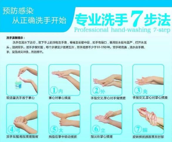 使用肥皂(洗手液)和流水搓手時間應不少于 20 秒。謹記洗手七字口訣。擦手時最好使用一次性擦手紙,如果沒有,用潔凈的毛巾擦拭,毛巾變濕時需及時更換。