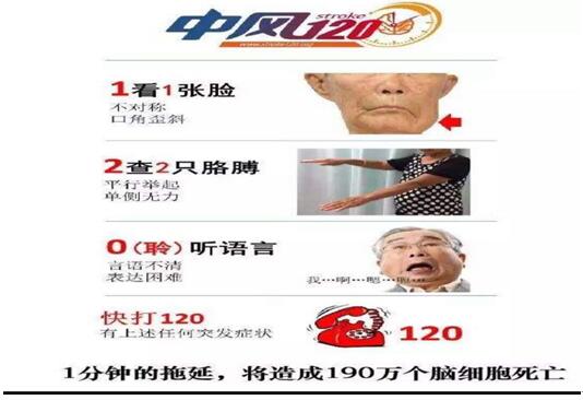 如有出現口角歪、單側無力、言語不清等癥狀應立即撥打“120”或我院急救電話“029-33779595”。在卒中的治療中,國際上一直強調“時間就是大腦”,也就是說,如果患者越早到達醫院并獲得治療,那么生命得到挽救的可能性越高,預后越好。