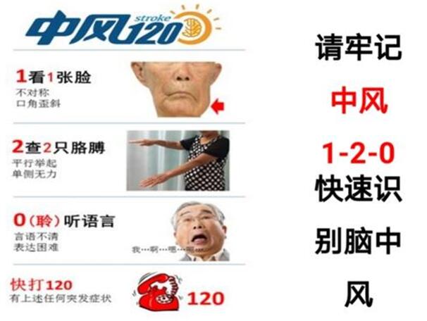 一是國家衛(wèi)生健康委腦防委、中國卒中學(xué)會(huì)推薦的“1-2-0”三步識(shí)別法: