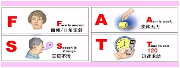 Time(時(shí)間):有兩重含義,第一重是如果上述三項(xiàng)檢查有任何一項(xiàng)不能完成,而且是在短時(shí)間出現(xiàn),需考慮卒中的可能;第二重是應(yīng)該盡早就診,盡量前往有溶栓能力的醫(yī)院,并告知主要癥狀和發(fā)病時(shí)間。