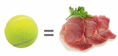 1、不超過1個“網球”的肉類:中年人一天吃肉不超過二兩,青少年可以稍微多吃點,老年人要少于這個量。