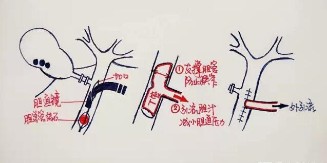 因為膽管是肝臟分泌的膽汁進入腸道的唯一通路,所以膽管結石無法像膽囊結石那樣可以簡單切除。當膽管切開取石再縫合后,愈合的時候因為切口收縮可能會造成膽道狹窄,所以常規在膽管內留置一根T形管,防止狹窄和膽漏。目前T管一般要留置1-2月,造影沒有狹窄或結石殘留后方可拔除。