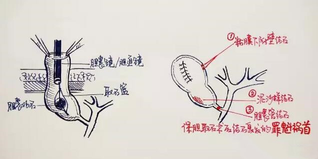 B超或核磁共振等影像學檢查明確單發或少發結石,術中必須膽道鏡或膽囊鏡明確沒有殘余結石或泥沙,否則,結石復發是保膽術后最大的痛。