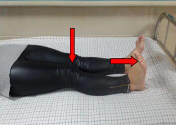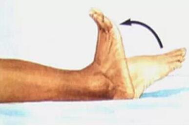 (2) 繞環(huán)動作:取平臥位或坐于床上,下肢伸展,大腿放松,以踝關(guān)節(jié)為中心,分順、逆時針兩個方向,交替進行360°環(huán)繞動作,每次3-5分鐘,每天3-4次。