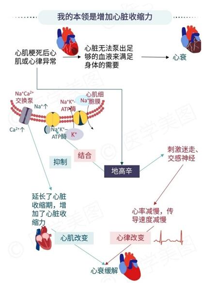 地高辛 是目前臨床最常使用的中度強心藥物,自1785年臨床使用至今已有200多年的歷史。具正性肌力作用,能減慢心率,有效改善心力衰竭癥狀和心功能,臨床常用于治療心力衰竭、心房顫動及其他心律失常等。