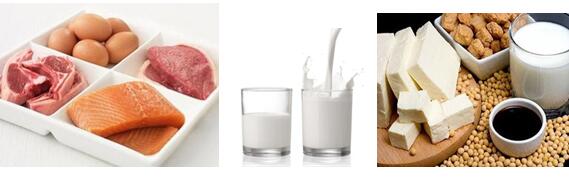 蛋白質廣泛存在于動植物性的食物中,其中水產類、畜禽肉類、蛋類、乳類等動物性食物中所含的蛋白質為動物性蛋白;谷薯類、豆類及制品、蔬菜水果類及堅果等植物性食物中的蛋白質即為植物性蛋白。動物蛋白不低于蛋白質總量的33%,同時補充一定量豆類蛋白。多選用大豆、魚、禽、瘦肉等優質蛋白。中國居民膳食指南(2016)推薦成人每天平均攝入水產類40-75克,畜禽肉40-75克,蛋類40-50克,平均每天攝入魚、禽、蛋和瘦肉總量120-200克。
