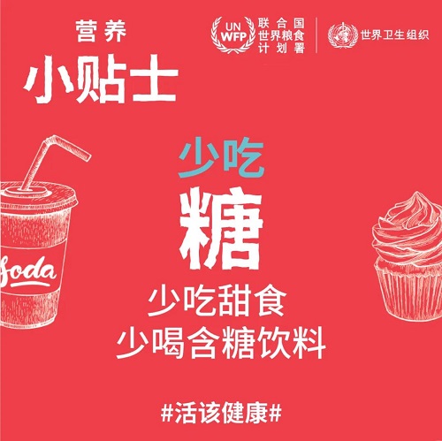 限制甜食和含糖飲料的攝入,如碳酸飲料、果汁和果汁飲料、果汁濃縮液或粉、風味飲料、能量和運動飲料、即飲茶和咖啡以及調味乳飲料。