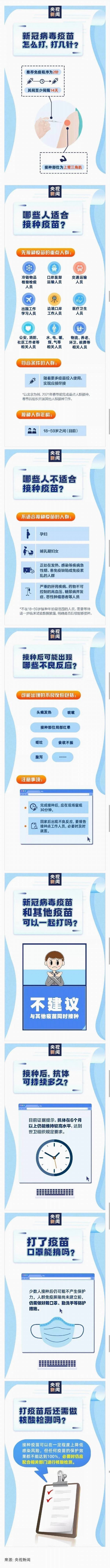 近日,我國首批新冠病毒疫苗開始對重點人群進行接種。疫苗需要打幾針?適用于哪些人群?打完后能不能摘口罩?出現不良反應怎么辦?今天,通過一組圖,一起了解↓↓↓