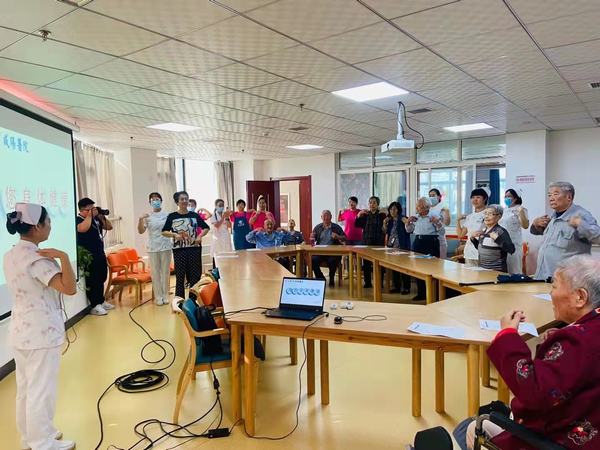 同時(shí),還為老人們精心準(zhǔn)備了“預(yù)防卒中保健操”,在劉敏護(hù)士長(zhǎng)的帶領(lǐng)下,老人們?cè)谥w的伸展與屈曲之間,老人們感受到了來(lái)自白衣天使溫暖的關(guān)懷。