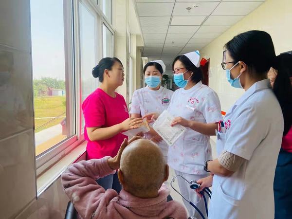 我院王長(zhǎng)寧總護(hù)士長(zhǎng)及路娟醫(yī)師帶領(lǐng)一行人員實(shí)地走進(jìn)老人們的房間進(jìn)行查房、查體,為傷殘老人進(jìn)行日常用藥與康復(fù)功能鍛煉指導(dǎo),并發(fā)放隨身攜帶的健康教育宣傳冊(cè)。