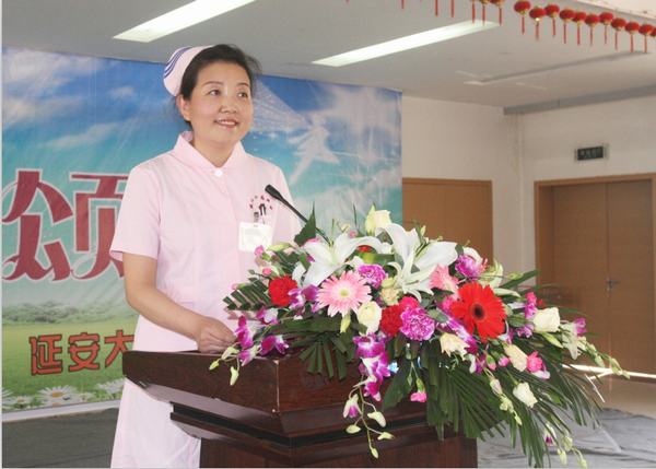首先護理部徐京華主任致辭,表達了對廣大護士節日的祝福,希望通過表彰、獎勵先進,激勵和帶動全院護理人員學習先進、趕超先進和全心全意為患者服務的工作熱情,促進護理工作再上新臺階。對護理工作做一階段總結,在踐行“優質護理服務示范工程”活動過程中,在醫院領導的大力支持下,圍繞今年工作重點,全院護士積極努力,采取有效措施使得我院優質護理服務工作得以穩步發展,全院臨床科室全部開展,今年新開病區也已遞交申請書和開展計劃方案。以病人為中心,深化專業內涵,責任護士全面負責,使病人感受到“這里的每名護士都關心您”。去年至今,病人點名表揚護士500余人,最多被點名表揚18次,收到表揚信330封。近幾年我院護理工作成績斐然,2次被評為陜西省優質護理示范工程“先進集體”榮譽稱號;每年被評為咸陽市先進集體;今年我院又被評為咸陽市“2014年度優質護理服務先進單位”;心血管內五科病區被評為咸陽市“2014年度優質護理服務先進病區”;邢娟護士長、周莉護士被評為咸陽市“2014年度優質護理服務優秀護士”。
