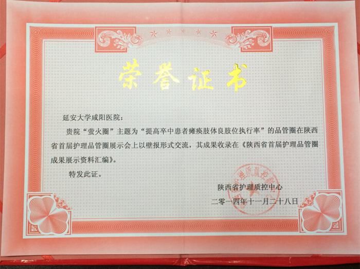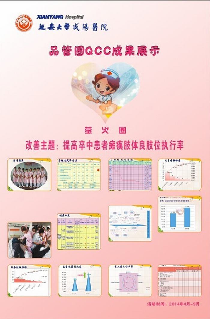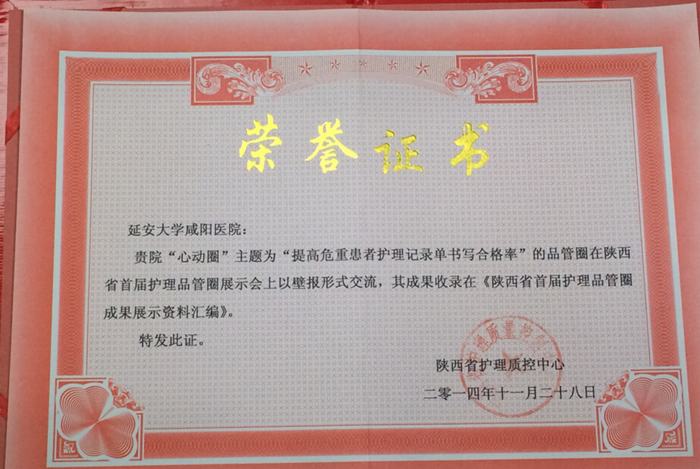 11月27日至28日,由陜西省質(zhì)控中心主辦的陜西省第一屆護(hù)理品管圈成果匯報(bào)大會(huì)在西安市隆重召開。全省各地精選的22家醫(yī)院品管圈項(xiàng)目代表參加了此次會(huì)議。其中有12家醫(yī)院品管圈上臺進(jìn)行PPT演示講解,并獲得獎(jiǎng)勵(lì),并有10家醫(yī)院品管圈在展示會(huì)上以壁報(bào)形式交流,我院有兩個(gè)團(tuán)隊(duì)心外科的 “心動(dòng)圈”(主題:提高危重患者護(hù)理記錄單書寫合格率)及康復(fù)科的“螢火圈”(主題:提高卒中患者癱瘓肢體良肢位執(zhí)行率)參加壁報(bào)交流,成果被收錄入《陜西省首屆護(hù)理品管圈成果展示資料匯編》。我院是咸陽市唯一進(jìn)入成果展示醫(yī)院,為咸陽市護(hù)理界和我院爭得榮譽(yù)。