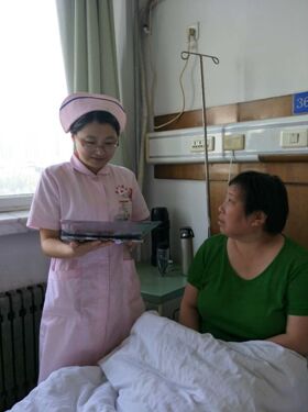 2010年國家開展“優質護理服務”工作,她和科室的護理人員積極準備并向院提出科室開展優質服務工作的申請,得到了醫院的批準。2011年科室成為院第二批開展優質護理服務的科室,她帶領全體護理人員轉變觀念,不斷探索優質護理服務的管理創新、服務創新和技術創新模式,從細節入手??剖易o理人員微笑服務、使用文明用語,儀表端莊,給患者留下了深刻的印象;實行責任制整體護理,為患者提供全程不間斷服務;實行APN排班模式,滿足了血液、內分泌專業病種復雜、病情變化快的需求,提高人力資源的利用率,體現“以人為本”的優質護理服務理念;為患者提供留取24h尿蛋白定量的小桶、糖尿病健康教育的資料、血液病患者保護性隔離的物品、為患者和家屬提供針線、剪刀等日用生活用品,每月調查科室患者對護理工作的滿意度,了解工作中的不足并積極改進,為患者提供與疾病相關的治療、護理、康復指導等工作,得到了患者、家屬及科室以上的肯定與鼓勵,真正做到了患者滿意、社會滿意、政府滿意、護士滿意、醫生滿意、同行滿意??剖冶辉u為院“優質護理服務先進病區”,“服務明星科室”等稱號。