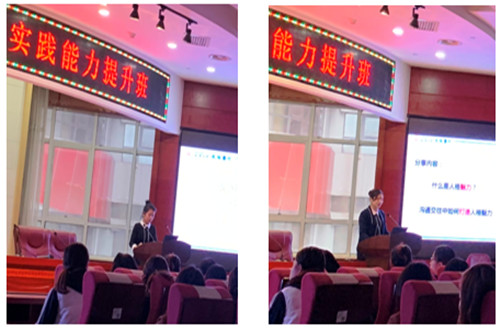 在第二天的授課培訓中,護理部主任楊敏講授了“溝通中的語言藝術”,自溝通的類型、特點與影響因素切入,講述了溝通的情境性、得體性、目的性等特征,最后總結了護理工作中溝通的語言藝術;武斐護士長講授了“敏感場景下護患溝通技巧”,講授了當患者憤怒、冷漠、不合作等場景下,護理工作的溝通技巧。奉明講授了“溝通中人格魅力的打造”,講述了人際溝通能力是一個人知識、人品、修養以及各種心理能力的綜合,闡述了提高人際溝通能力中不斷完善人格魅力的重要性及方法。同時,邀請醫學美容科主任黃蕾講授了“職業妝容塑造與個人形象設計”,講解了職業妝容體現的專業性所起到贏得認可的效果,從體型、發型、妝容、服飾、個性、心理、文化修養等要素展開講述了妝容塑造與個人形象設計。講演者們運用大量翔實生動的案例和通俗易懂、富有感染力的語言圍繞護患溝通技能與實踐能力提升主題對醫護人員服務禮儀進行闡述,幽默詼諧的語言,生動熱情的講解,在整個培訓過程中,贏得了培訓學員的陣陣掌聲。