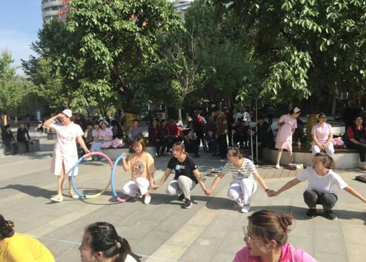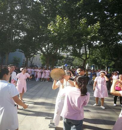 “加油!加油!”從延安大學咸陽醫院杏林廣場傳來了一陣陣掌聲、笑聲、歡呼聲,2019年5月9日16:00,主題為“凝心聚力,青春飛揚”的5.12國際護士節系列活動之戶外團建活動正在熱火朝天的進行著。引來了許多患者及家屬的駐足觀看。