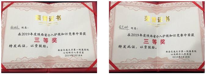 5月18日早上,陜西省介入護技知識競賽開始了,我院姚繼花和安蕊娜護師參加了競賽,通過必答題、選答題、搶答題等形式的考核。安蕊娜與姚繼花用自己扎實的理論知識、豐富的工作經驗及穩定的現場發揮,獲得了“三等獎”的榮譽。