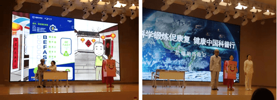 本次比賽,我院護理部高度重視,層層選拔人員,時時關(guān)注進(jìn)度,并邀請具有比賽經(jīng)驗和演講功底的老師進(jìn)行全程指導(dǎo)。《肌細(xì)胞歷險記》由張莎扮演肌細(xì)胞、灰猛強扮演患者王大爺、董星辰演繹康復(fù)專科護士,以肌細(xì)胞為第一人稱生動的講述了它的歷險經(jīng)歷,而王大爺也形象的還原了生活中患者的真實情況,十分有代入感,康復(fù)專科護士則通過扎實的專業(yè)知識通俗易懂的指導(dǎo)患者正確康復(fù)運動,體現(xiàn)了康復(fù)專科護士在腦卒中患者康復(fù)過程中的價值。除此之外,作品還強調(diào)了快速識別腦卒中的重要性以及溶栓治療的及時性。