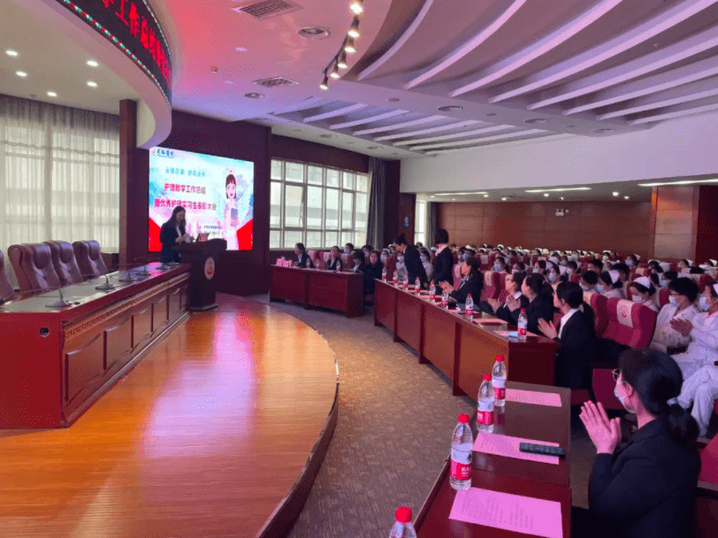 2023年2月23日下午兩點,延安大學咸陽醫院護理教學管理委員會在腦血管病院第三學術廳召開了“2022年度教學工作總結暨優秀護理實習生表彰大會”,本次會議由教學干事孫姣姣主持,楊敏院長助理、黨文婷總護士長、教學管理委員會全體成員及在院的200名護理實習生參加本次會議。