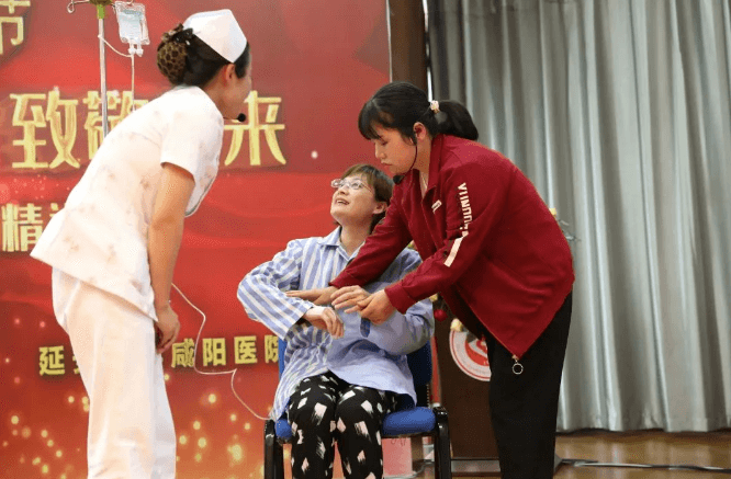 肩有擔(dān)當(dāng),心有選擇。不同護(hù)理專業(yè)的服裝表演,將護(hù)士職業(yè)禮儀融入其中,展示延安大學(xué)咸陽醫(yī)院不同崗位上的護(hù)士職業(yè)風(fēng)采。
