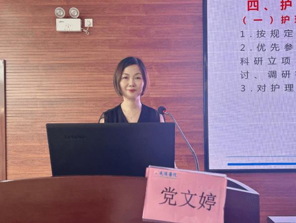 開班儀式由護理教學管理委員會委員段秋燕護士長主持,護理教學管理委員會主任委員黨文婷總護士長為開幕式致辭,她指出臨床護理教學貫穿于整個護理教育體系,是提升護士核心能力的重要手段,也是護理高質量發展的重要途徑。希望帶教老師在今后的帶教工作中以傳道授業為己任,創新帶教模式,拓展帶教思維,深耕專科護理,保證患者安全,做一位有高度、有溫度的帶教老師,培養一批精專業、善關懷的學生,為醫院和社會培養更多優秀的護理人才。隨后,黨老師憑借多年的臨床教學經驗,就護理教學相關管理制度及帶教質量檢查標準進行了詳細解讀。