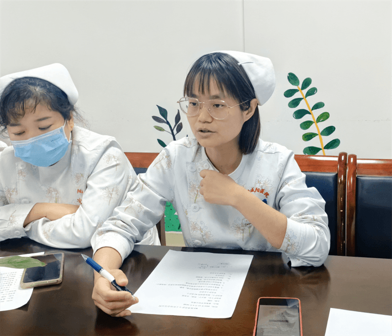 分享結(jié)束,在劉敏護士長的引導(dǎo)下,大家就臨床上常見的危重患者管理、飲食管理、風險評估、溝通不暢等問題進行了激烈的討論,大家各抒己見,暢所欲言,從患者角度、護士角度及醫(yī)院角度去探討原因,提出預(yù)防及改進措施。