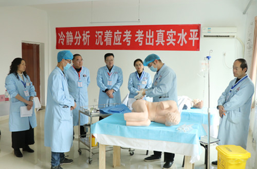 我院領導高度重視此次結業(yè)考核,為保證此次專業(yè)技能考核工作公平、公正、嚴格、規(guī)范地實施,多次召開專題會議部署落實各項工作。首先是加強組織機構建設。根據(jù)考核基地實際情況,成立了考核領導小組,康彥文院長親自掛帥統(tǒng)領全局工作,各專業(yè)基地主任把關各專業(yè)基地考場,各專業(yè)精英骨干組成了考官隊伍,住培辦總攬考務及協(xié)調工作,各部門、各人員分工明確;二是完善考核管理制度。根據(jù)省住院醫(yī)師規(guī)范化培訓臨床實踐能力考核基地要求,進一步健全試卷保密管理、考核突發(fā)事件應急處理、考核成績管理等制度;三是做好人員分類培訓。全院總考官、巡考、考官、考務工作人員50余人,分別各級、各類人員進行了培訓,保證了考核過程規(guī)范;四是合理設置考核流程。根據(jù)醫(yī)院現(xiàn)有場地布局,充分利用臨床技能培訓中心,科學合理地制定了考試流程,注重環(huán)節(jié)設計,各項工作環(huán)環(huán)相扣,保證了考試過程流暢高效;五是強化實施環(huán)節(jié)管理。設立總考官和專業(yè)主考官,加強考官執(zhí)考過程的指導和監(jiān)督,處理考核過程中遇到的各類突發(fā)情況,維護考試的權威性、嚴肅性、公平性。
