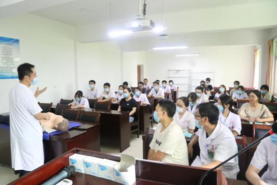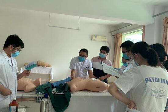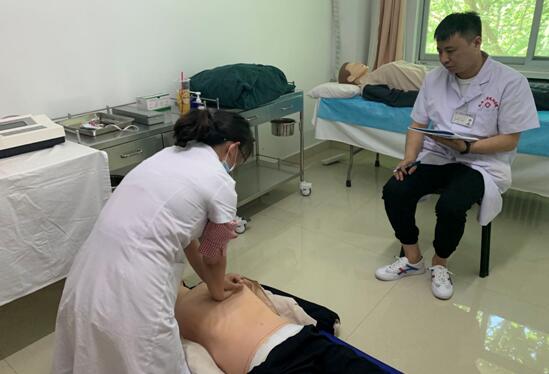 在培訓環節中,我院腫瘤內科殷國慶主任、急診科由軍寧主任、腫瘤胸外科李偉主任、消化內科二病區張榮主任、普通外科二病區李玉強主任、神經外科一病區岳新鵬老師、血液內分泌科張濤老師、骨科二病區曹熙老師分別以圖文并茂、現場演示等方法將心肺復蘇、胸腔穿刺、胃腸減壓法、腹腔穿刺術、腰椎穿刺術、四肢骨折與搬運、骨髓穿刺術等培訓項目進行了生動、細致的講解,并在隨后的模擬實訓階段手把手地對各小組每個學員進行了針對性的指導和一對一訓練。