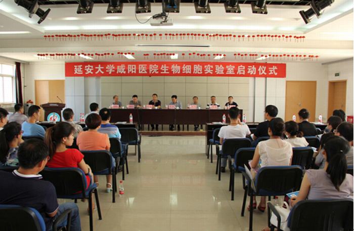 2015年7月23日15:00,由我院與北京英默生物公司聯合舉辦的“延安大學咸陽醫院生物細胞實驗室成立儀式暨學術研討會”在我院綜合樓四樓會議室隆重召開。