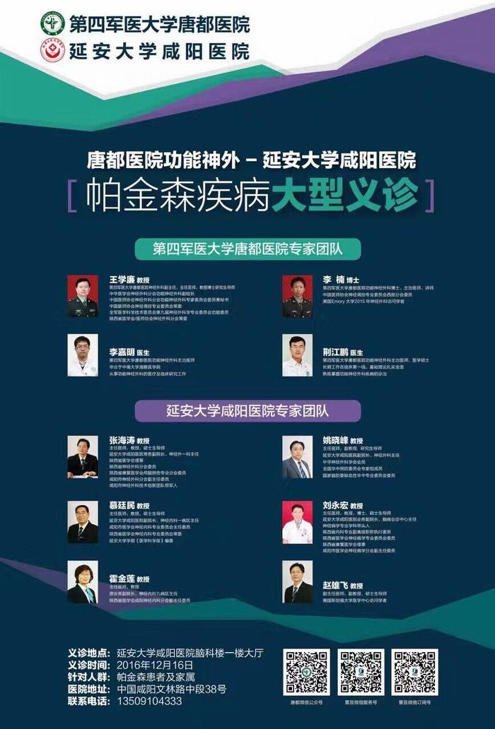 延安大學咸陽醫院——唐都醫院帕金森疾病大型義診活動將在我院隆重舉辦