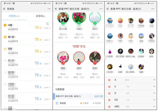 智慧課堂應用實戰(zhàn)培訓中,李翠老師就“雨課堂基本使用方法”進行了詳細講解,李偉老師、陳青老師分別通過實戰(zhàn)課堂教學,帶大家將雨課堂的各個功能體驗了一次,分別通過對課前預習PPT學習情況的通報,確定了課堂教學的重點,在課堂教學過程中展現了雨課堂投票、答題、紅包、彈幕、隨機點名等功能,并在結束學習后和大家共同分析了學習報告,發(fā)現了存在問題,讓老師對課堂教學的把控更加有效。對于使用雨課堂后的教學效果,現場各位老師贊美有加,“使用雨課堂可以了解學生的預習情況,包括有哪些同學完成預習,哪些沒有完成預習,預習到哪一頁,有哪些頁有不懂的等。這些數據,讓他切切實實地掌握學生的預習情況。”、“雨課堂極大地拉近了我們年輕教師與學生之間距離,消除了代溝和隔閡,活躍了課堂的氣氛。”
