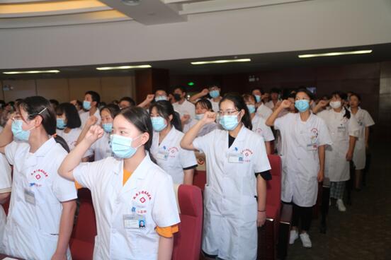 歡迎儀式上,科教部王紹輝副部長(zhǎng)代表醫(yī)院對(duì)實(shí)習(xí)生來院學(xué)習(xí)表示歡迎,并對(duì)醫(yī)院的基本情況進(jìn)行了介紹,隨后對(duì)大家在醫(yī)院的學(xué)習(xí)生活提出幾點(diǎn)寶貴的意見,希望同學(xué)們能迅速?gòu)乃枷肷贤瓿山巧ㄎ缓娃D(zhuǎn)變,更好、更快的適應(yīng)新環(huán)境,以滿腔熱情投身于實(shí)習(xí)中去,做一個(gè)文化素養(yǎng)與專業(yè)素質(zhì)兼?zhèn)涞尼t(yī)學(xué)人。隨后,學(xué)生代表陳浩帶領(lǐng)全體實(shí)習(xí)生進(jìn)行宣誓。