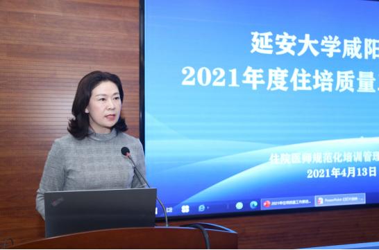 為促進我院住院醫師規范化培訓管理工作更好更快地發展,2021年4月13日下午,延安大學咸陽醫院“2021年度住培質量工作推進會暨住培結業考核動員大會”在外科病院二樓會議室召開。我院張海濤院長、科研教學管理中心韓曉芳主任、各專業基地主任、教學主任、教學秘書、王紹輝副主任、全體住培醫師、碩士研究生及住培管理人員共139人參加了此次會議。本次會議由科研教學管理中心韓曉芳主任主持。