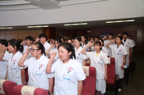 歡迎儀式上,科研教學(xué)管理中心韓曉芳主任代表醫(yī)院對實習(xí)生來院學(xué)習(xí)表示歡迎,并對醫(yī)院的基本情況進行了介紹,隨后對大家在醫(yī)院的學(xué)習(xí)生活提出六點寶貴的意見,希望同學(xué)們能迅速從思想上完成角色定位和轉(zhuǎn)變,更好、更快地適應(yīng)新環(huán)境,以滿腔熱情投身于實習(xí)中去,做一個文化素養(yǎng)與專業(yè)素質(zhì)兼?zhèn)涞尼t(yī)學(xué)人。隨后,學(xué)生代表劉宇成帶領(lǐng)全體實習(xí)生進行醫(yī)學(xué)生宣誓。