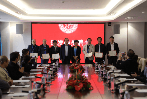 李文慧副秘書長和趙鋼主任委員為六位當選的副主任委員頒發(fā)聘書