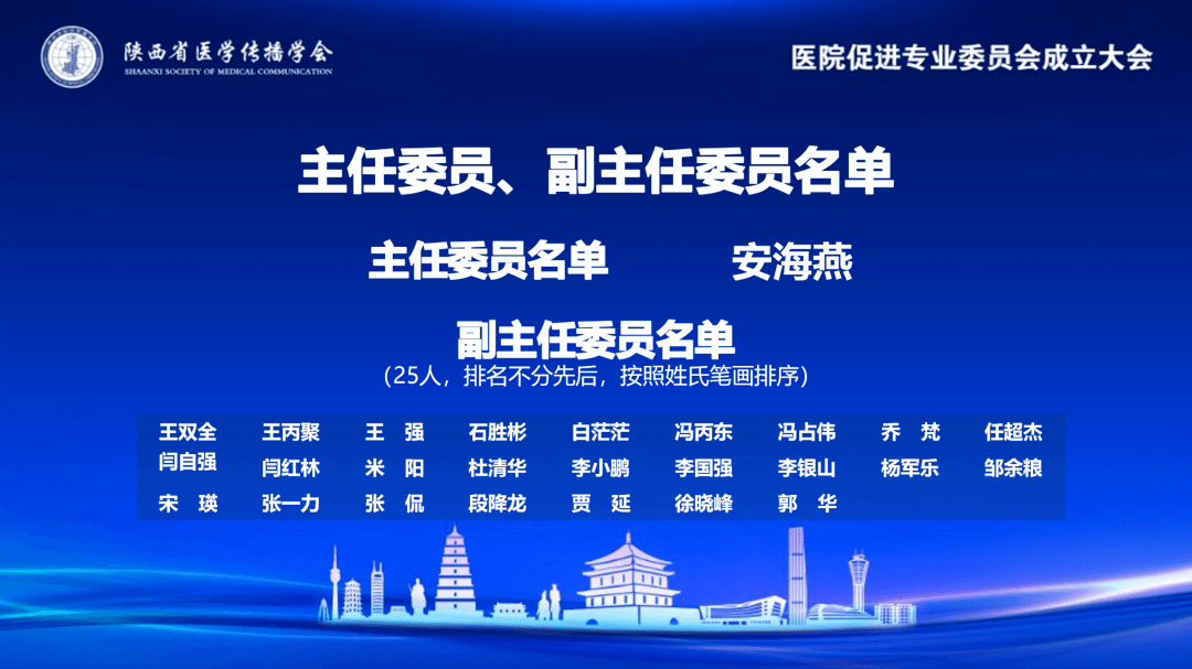 陜西省醫(yī)學(xué)傳播學(xué)會醫(yī)院促進(jìn)專業(yè)委員會由安海燕(原陜西省衛(wèi)生健康委員會醫(yī)政醫(yī)管局局長)和鄒余糧(西安交通大學(xué)第一附屬醫(yī)院東院區(qū)執(zhí)行院長)等省內(nèi)權(quán)威專家學(xué)者發(fā)起,聚焦新醫(yī)改形勢下的現(xiàn)代醫(yī)院管理制度、智慧醫(yī)院優(yōu)質(zhì)服務(wù)和精細(xì)化運(yùn)營管理等內(nèi)容,圍繞醫(yī)院績效考核、國家醫(yī)學(xué)中心建設(shè)、醫(yī)院等級評審、深化醫(yī)保支付方式改革和學(xué)科建設(shè)等主題,通過解讀國家政策、探討管理內(nèi)涵和分享管理經(jīng)驗等,促進(jìn)醫(yī)院核心競爭力和區(qū)域影響力不斷提升,促進(jìn)醫(yī)院高質(zhì)量發(fā)展,增強(qiáng)患者就醫(yī)獲得感、安全感。第一屆專業(yè)委員會由229名委員構(gòu)成,人選來自全省各地市醫(yī)療機(jī)構(gòu)醫(yī)院管理人員,代表了我省醫(yī)學(xué)傳播學(xué)術(shù)研究的最權(quán)威力量。