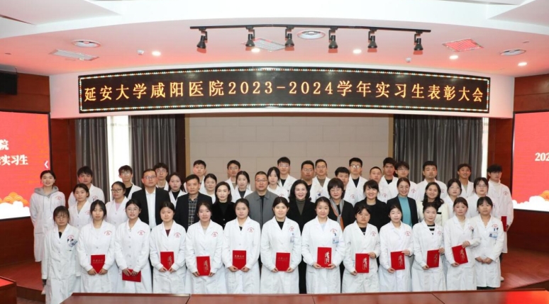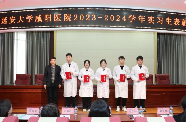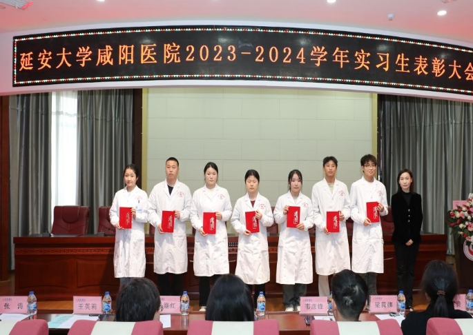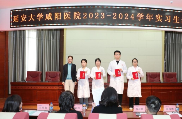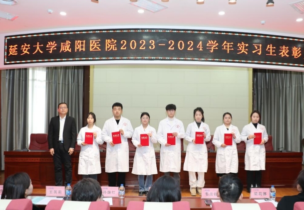 2024年3月1日下午,我院在腦血管病院第三學術廳舉辦了“2023-2024學年優秀實習生表彰大會”。延安大學咸陽醫院韓曉芳調研員、口腔病院韋彥鋒院長、檢驗科孫繼紅主任、康復醫學治療一區梁莉娜主任、醫學影像科超聲診斷專業王英莉主任、藥學部劉寶貴主任、醫學影像科CT/磁共振診斷專業張濤主任、科教部教學主管樊高俠、實習帶教老師代表、全體實習生等200余人參加了此次活動。本次會議由科教部徐揚老師主持。