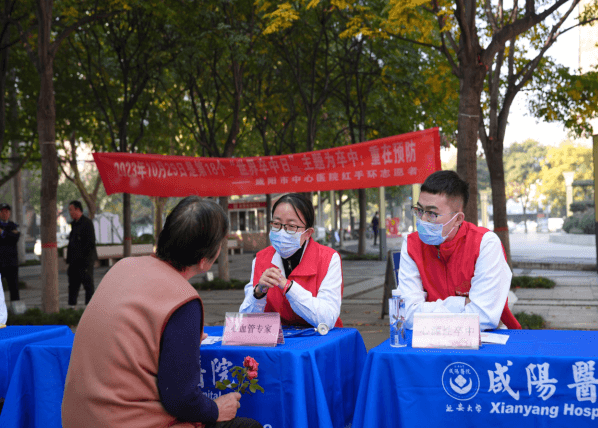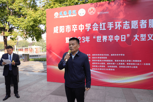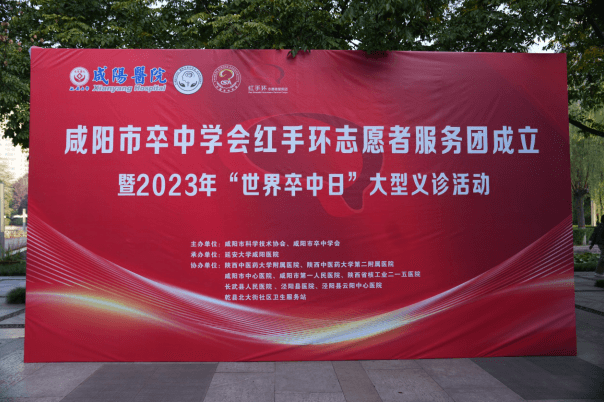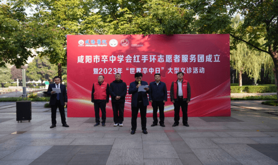 2023年10月30日,由咸陽市卒中學會主辦,延安大學咸陽醫院承辦的咸陽市紅手環志愿者服務團成立暨2023年“世界卒中日”大型義診活動在渭城文林廣場隆重舉辦。出席活動的領導有咸陽市衛健委醫政科科長曹崇保、渭城區衛健委主任趙國慶、渭城區紅十字會會長陳聯盟、咸陽市卒中學會會長慕廷民、延安大學咸陽醫院副院長兼腦血管病院院長、咸陽市卒中學會副會長李文強、咸陽市卒中學會副會長李戴楠、還有來自全市10家醫院腦卒中治療領域的專家和科普志愿者代表們參加會議。