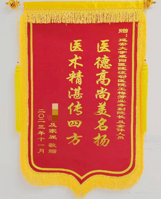 2023年11月22日上午,流動醫院業務副院長王梅芳看到一個陌生來電號碼后,隨即立即接通,原來這通來電是流動醫院在2022年禮泉下鄉義診活動時,留下的一個手機號碼,這位患者在西安打工,因早晨起床后突發左側肢體活動不靈伴失語,得知情況后,王梅芳副院長初步判斷為急性腦梗死,為了節省時間,指導患者家屬立即開車前來我院卒中中心并交代各種細節,緊急溶栓,時間就是生命,在發病4小時之內,及時到達我院,做了溶栓介入治療,經觀察偏癱及失語癥狀,逐漸消失,8小時后,病人恢復正常。患者家屬送來錦旗,連連道謝:“非常感謝貴院前期下鄉醫療知識宣傳指導,使我們沒有走彎路,抱著試一試的態度,都一年了,沒想到還能及時的聯系到醫生,爭取了寶貴的時間,使患者及時得到了有效的治療,獲得了健康,我們全家對貴院的治療效果非常滿意,這是你們專業能力和負責任態度的體現。在此,我要向你們表示最誠摯的感謝。”
