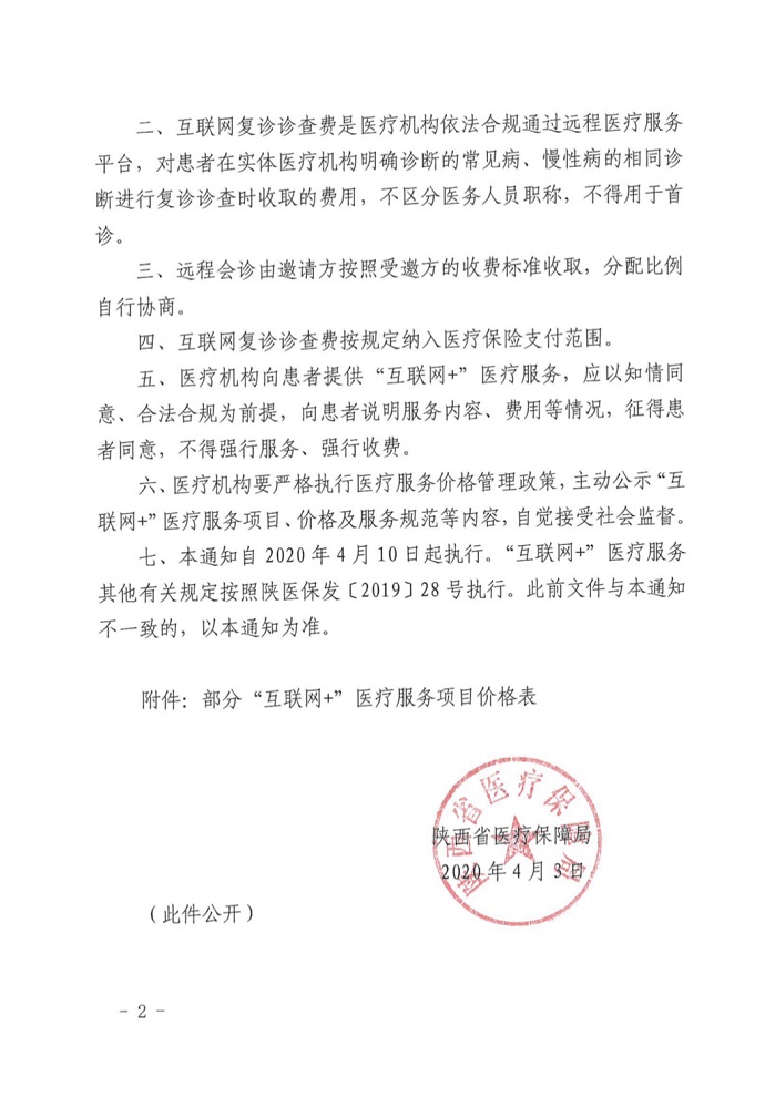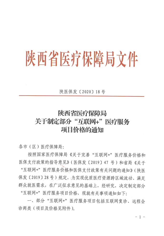 陜西省醫療保障局關于制定部分“互聯網+”醫療服務項目價格的通知.pdf
