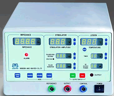 【設(shè)備功能】 根據(jù)電生理理論設(shè)計(jì)的電阻抗輔助定位和電刺激輔助定位,可對(duì)由計(jì)算機(jī)控制的數(shù)字影像設(shè)備MRI、CT、DSA等結(jié)合立體定向儀確定的靶點(diǎn)進(jìn)行驗(yàn)證和準(zhǔn)確定位,確保了在立體定向功能神經(jīng)外科中至關(guān)重要的靶點(diǎn)位置的精確。全數(shù)字控制、操作、顯示、穩(wěn)定可靠;全手術(shù)過(guò)程只需要一次進(jìn)針,即可實(shí)現(xiàn)全部三種功能;三種功能具有不同的聲光監(jiān)測(cè),例如電阻抗,阻抗不同則聲音的頻率不同,醫(yī)生通過(guò)聲音即可判斷電極進(jìn)入組織的深度。通過(guò)先進(jìn)的抗干擾技術(shù),有效地抑制高頻電壓對(duì)微弱溫度信號(hào)的影響,從而穩(wěn)定地控制溫度測(cè)量,把握病灶毀損成功的關(guān)鍵。