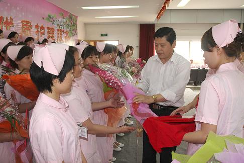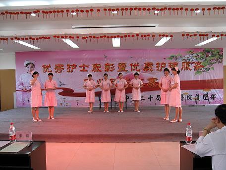 最后李院長對我院的護理人員表示了衷心的節日祝賀,充分肯定我們護理工作的同時,對今后工作提出了四點希望:1、轉變觀念,適應形勢;2、加強學習,提升技能;3、加強管理,提升意識;4、發揚傳統,恪守誓言的。在熱烈的氣氛中院領導給我院的優秀護士頒獎并一起合影留念。