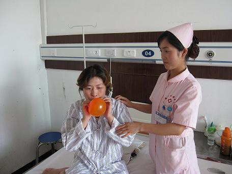 指導(dǎo)肺功能訓(xùn)練(吹氣球)