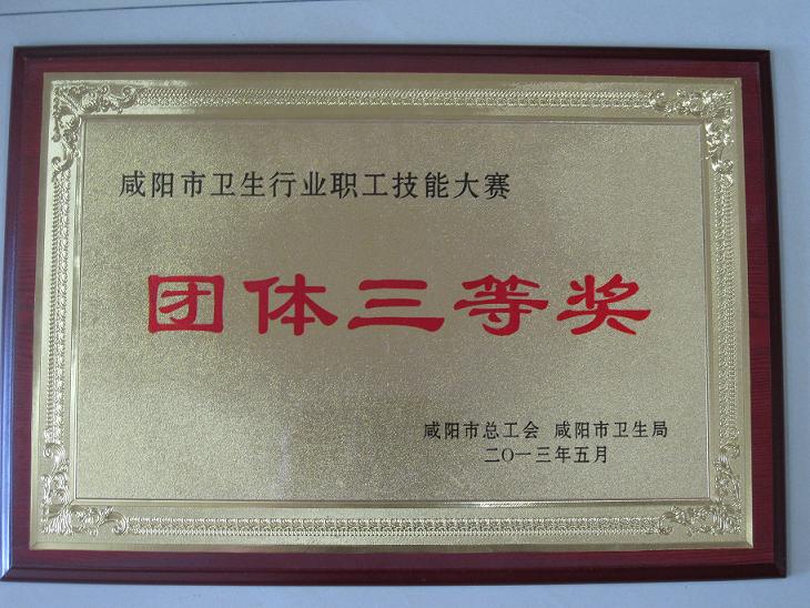 咸陽市總工會、咸陽市局衛生舉辦的全市衛生行業職工技能大賽“團體三等獎”