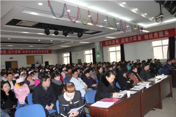 首先康彥文院長向大會作了題為《搶抓機遇 強化內涵 加快醫(yī)院跨越式發(fā)展步伐》的工作報告,全面總結了2013年度工作,安排部署了2014年工作要點。曹俊恒院長宣讀了2013年度受上級表彰的先進集體、先進個人和醫(yī)院表彰文件,會議還舉行了隆重的頒獎儀式,董事長及院領導與獲獎的先進集體合影留念。