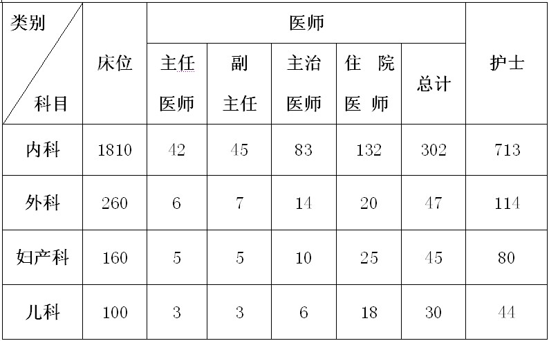 兒科專業(yè)共設置床位100張,配備各級醫(yī)師30名(主任醫(yī)師3名、副主任醫(yī)師3名、主治醫(yī)師6名、醫(yī)師18名),各級護理人員44名。