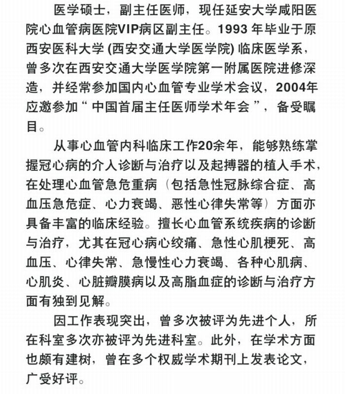 咸陽醫(yī)院心血管病醫(yī)院 心臟內科專家團隊 連載
