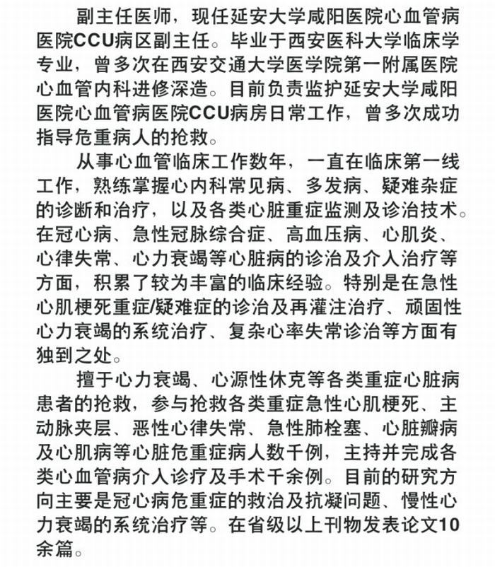 咸陽醫院心血管病醫院 心臟內科專家團隊 連載