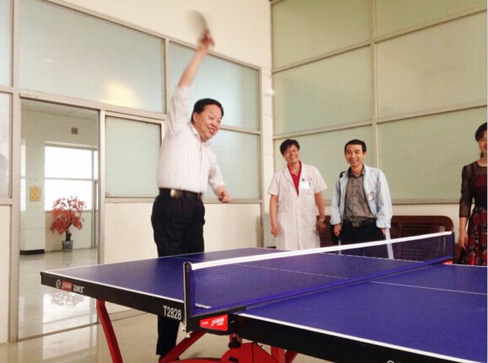 當日下午,我院職工文化活動中心開業典禮在我院醫技樓二樓西側隆重舉行。此前6月3日,董事長張群、院領導康彥文、曹俊恒、呂輝、姚曉峰、祝恒山等在團委人員陪同下前往活動中心進行指導,參觀了棋牌室、乒乓球室、臺球室、舞蹈房、信息室,張董事長和曹院長在參觀乒乓球室時,現場與職工進行了熱身競技,還在臺球室一展風采,活躍了職工文化活動中心的氣氛,也給院團委工作人員鼓足了干勁,為職工樹立了榜樣。